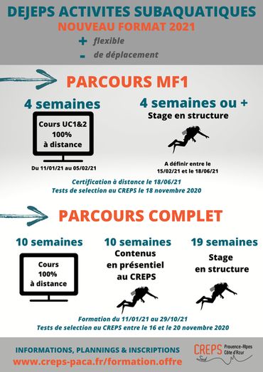 BPJEPS : Une réforme majeure avec la création de 2 BPJEPS distincts. Un BPJEPS option A "en scaphandre" et un BPJEPS option B "scaphandre".