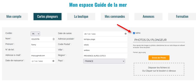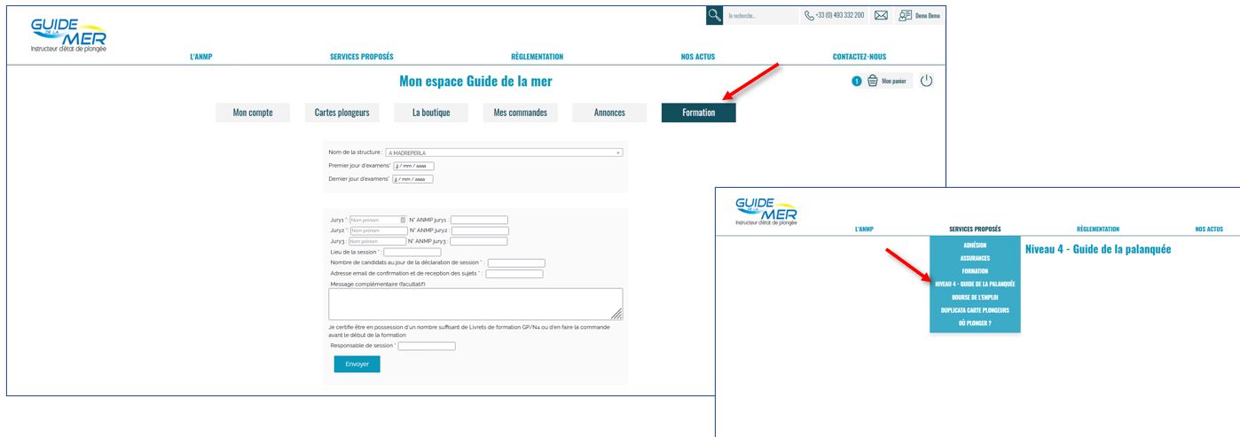 Lorsque vous êtes sur un onglet ouvert au public, cliquez sur votre nom en haut à droite pour revenir sur votre compte et aux services réservés aux Guides (compte, cartes, fournitures, …)