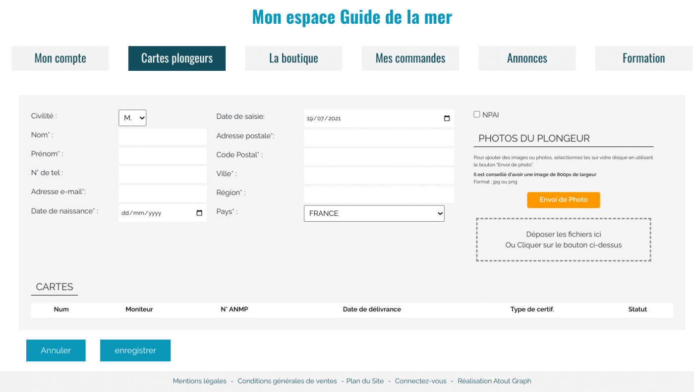 - En milieu de page – Vous êtes Guide de la mer ? – Connectez-vous